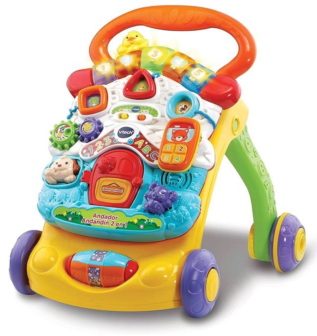 VTech - Andador andandín 2 en 1, correpasillos con música y luces, patas plegables, panel extraíble, regulador de velocidad, multicolor, versión español.