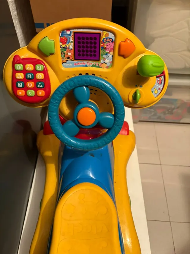 Detalles del productoCorrepasillos musical Vtech Activity Car 123 con volante y panel interactivo.