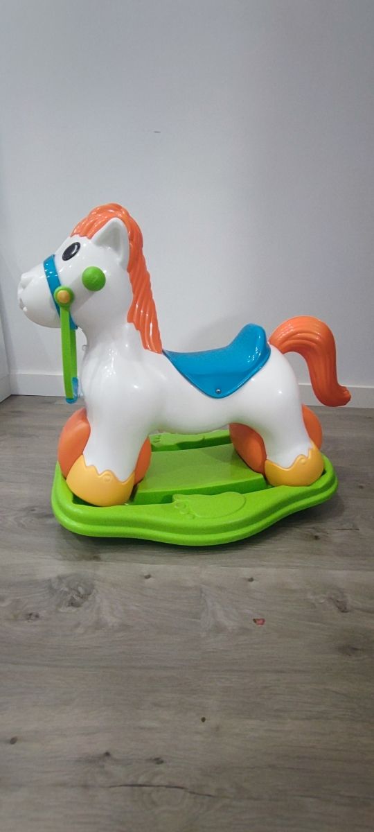 Correpasillos con forma de caballo convertible en balancín. Estable por sus grandes ruedas. Precio original 64€
