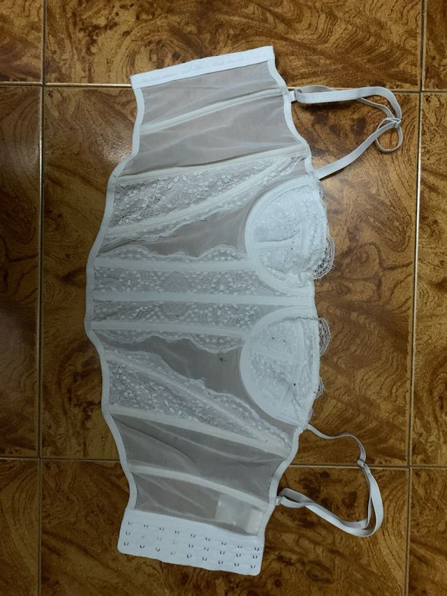 Corsé blanco de encaje y tul