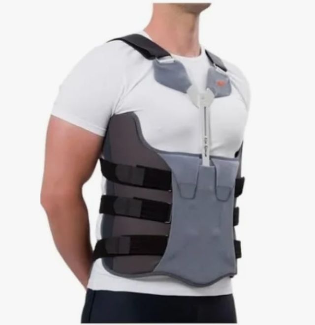 Detalles del productoVendo corsé ortopédico Orliman CT1002, ideal para soporte de espalda. Es de color gris y negro, con correas ajustables.