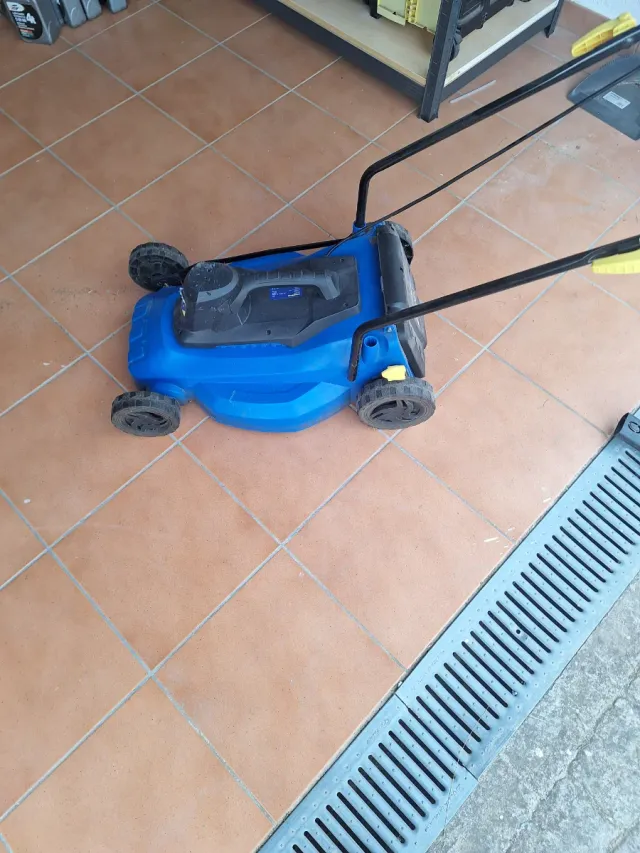 Detalles del productoCortacésped eléctrico de color azul, ideal para el cuidado de tu jardín. Diseñado para ser práctico y fácil de manejar.