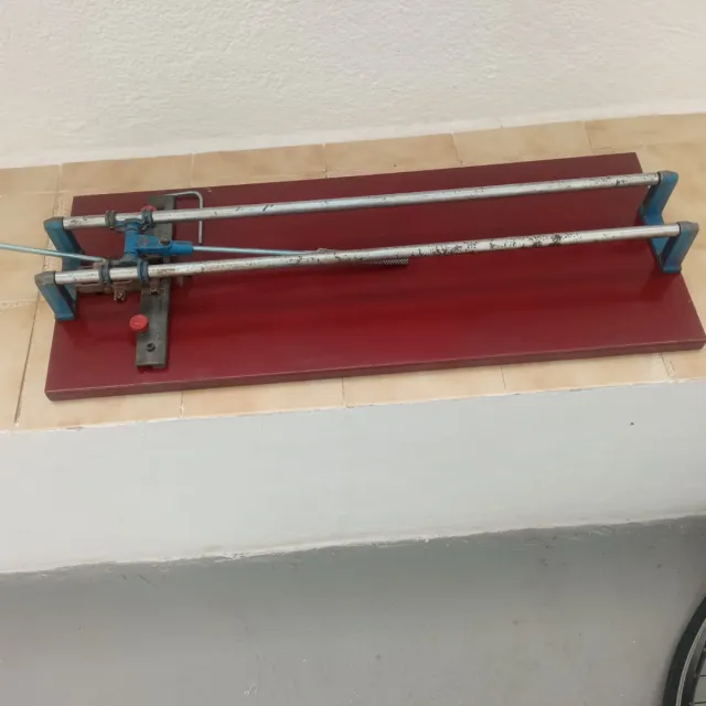 Máquina manual para cortar azulejos. Ideal para trabajos de alicatado.es marca rubi t60 - Base de color rojo. - Guías metálicas. - Mango de sujeción azul.
