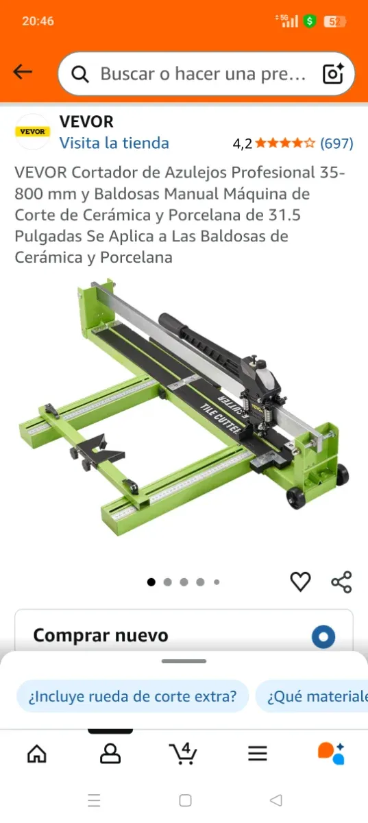 Máquina cortadora de azulejos profesional VEVOR. - Modelo: 35-800 mm. - Ideal para cerámica y porcelana. - Tamaño de corte: 31.5 pulgadas.