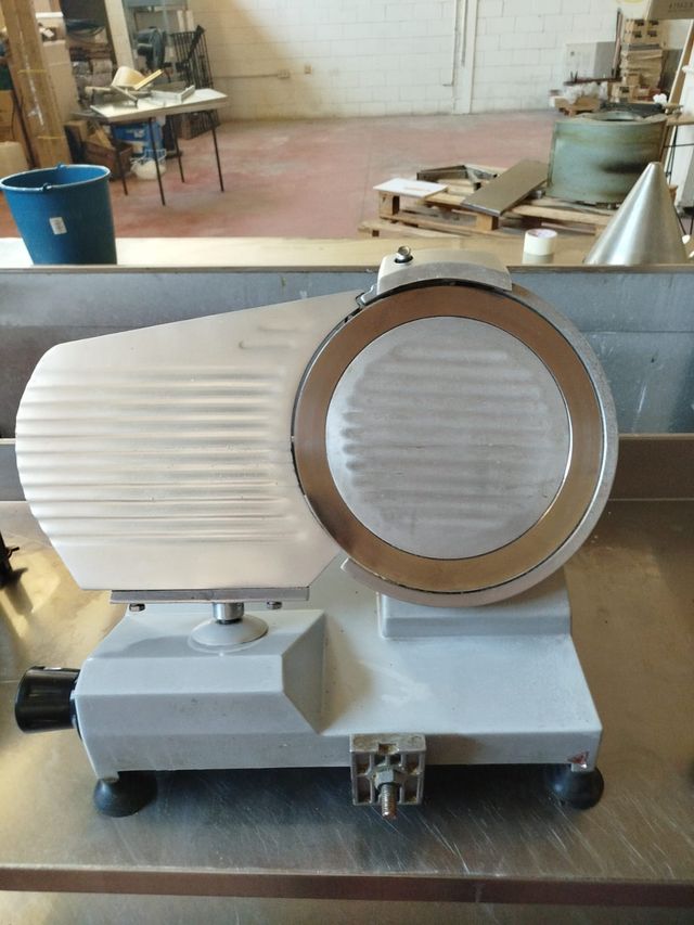 Detalles del productoCortador de fiambre profesional para hostelería. Ideal para cortar embutidos, quesos y otros alimentos con precisión.