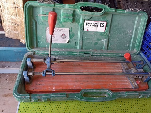 Cortador de azulejos Rubi TS-50 en buen estado. Ideal para cortar baldosas de cerámica. - Marca: Rubi - Modelo: TS-50 - Incluye maletín de transporte.