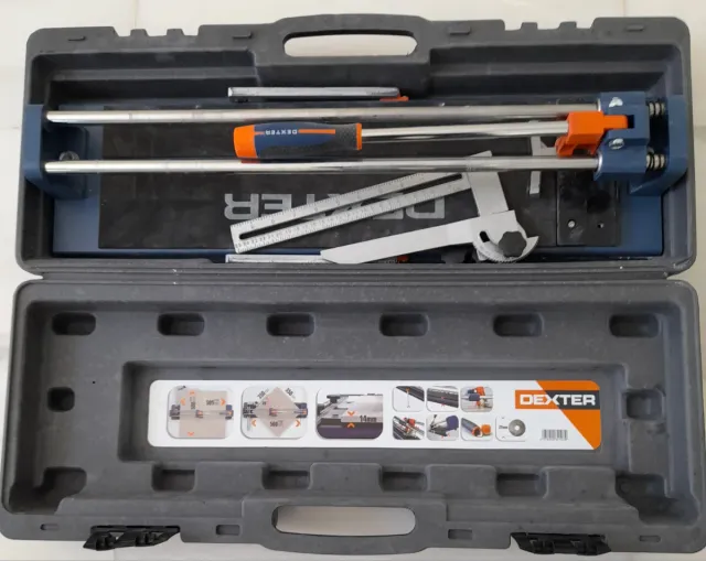 Detalles del productoCortadora de azulejos Dexter de 500 mm, ideal para cortes precisos. Incluye su maletín original para un transporte y almacenamiento seguros.