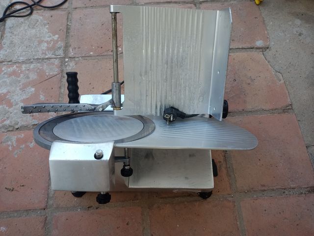 Cortadora de fiambres en buen estado. Ideal para cortar embutidos y quesos. - Estructura de aluminio. - Cuchilla afilada. - Fácil de usar y limpiar.