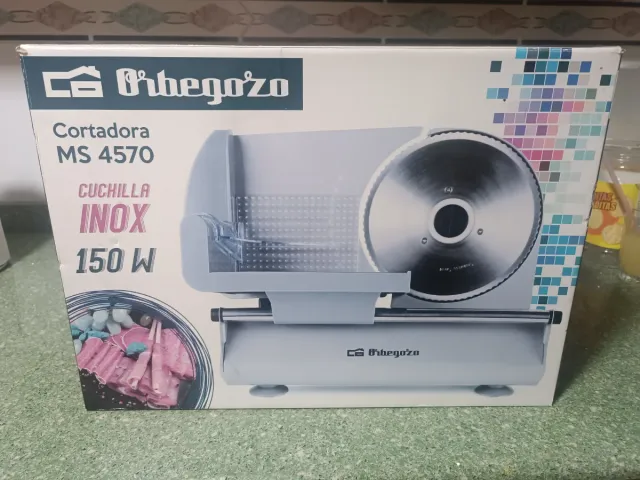 Cortadora de alimentos Orbegozo modelo MS 4570. - Cuchilla de acero inoxidable. - Potencia de 150 W.