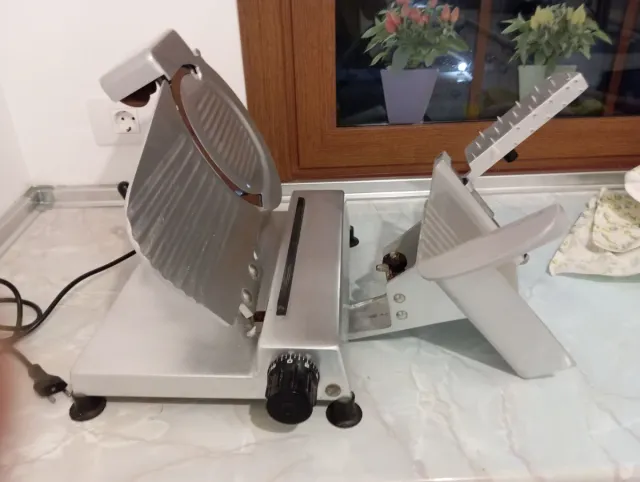Detalles del productoVendo una cortadora profesional con cuchilla de 22 cm y afilador. La cortadora está fabricada íntegramente en acero y aleación de aluminio. Está en excelentes condiciones, como se muestra en las fotos, y funciona perfectamente. Fácil a limpiar. No se realizan envíos debido a su peso.