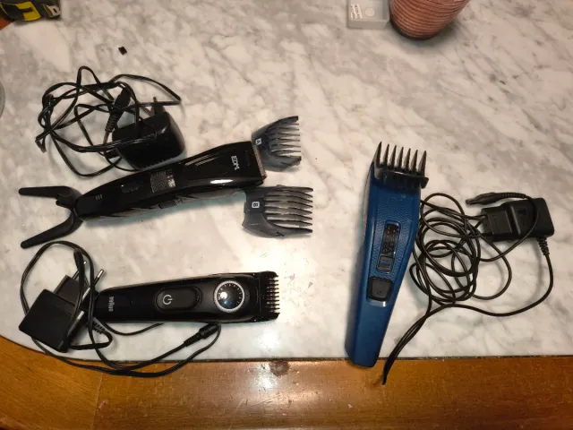 - Incluye dos cortapelos negros con batería recargable y uno azul 220V