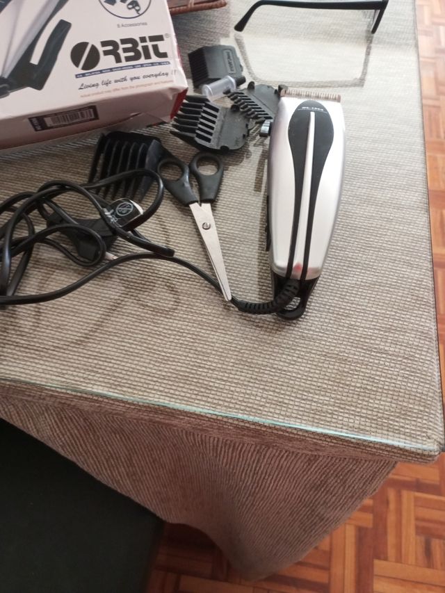 Detalles del productoCortapelos Orbit prácticamente nuevo. Incluye varios peines-guía y tijeras. Ideal para cortes de pelo en casa.