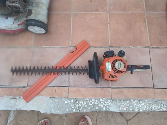 Cortasetos de gasolina Stihl HS 45. - Cuchilla de doble filo. - Protector de cuchilla naranja. ligera y manejable y manejable para el mantenimiento de setos en el jardín.