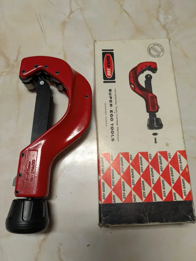 Detalles del productoCortatubos SUPER-EGO 736 6-67 mm, precio 25 euros. Cortatubos marca SuperEgo rojos 22 mm, 2 Uds, 4 euros cada uno. Marca Ratio 16 mm, 3 euros. Marca Acesa 16 mm, 3 euros. Marca Irimo 3-32 mm con cuchilla rota 1 euro.