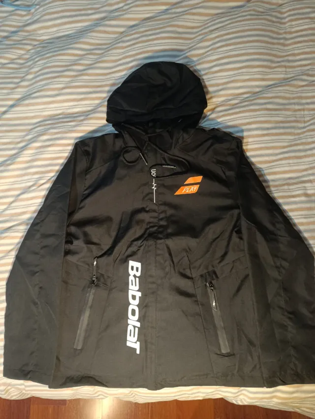 Cortavientos de moda con estampado. - Color negro. - Estampado PLAY en naranja. - Logo Babolat en blanco.