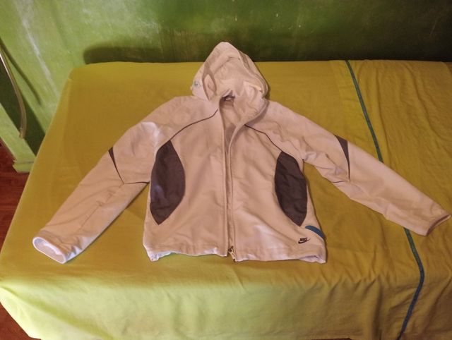 Detalles del productoChaqueta cortavientos Nike para hombre, color blanco con detalles grises. Está en buen estado.