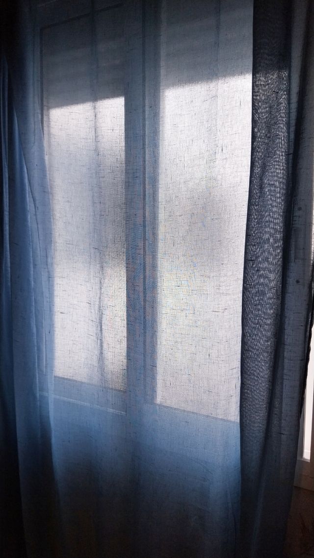 Cortina de hilo azul de 2m de ancho por 2.30m de alto.