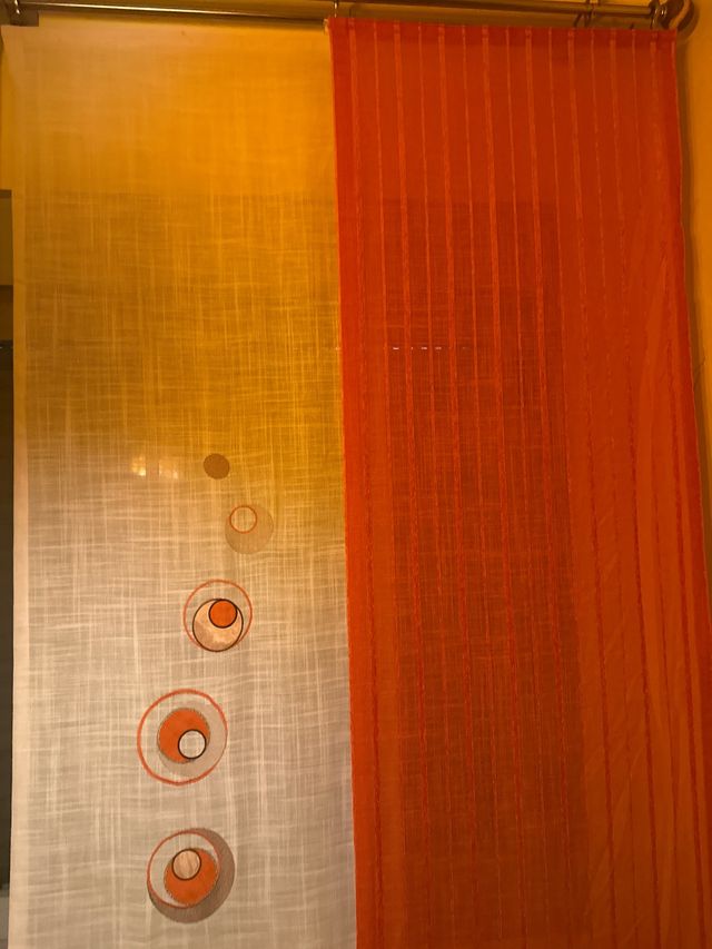 Cortinas tela japonesa naranja y blanco
