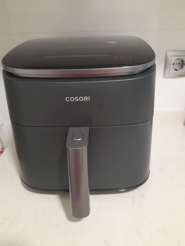 Detalles del productoFreidora de aire Cosori Turbo Blaze Chef Edition de 6 litros, prácticamente nueva. Es de color negro y tiene un diseño elegante y compacto.