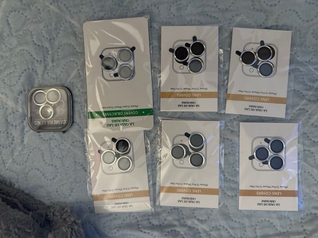 obejetivos o covertor para iphone 13 pro y pro max nuevos y en su empaque, se venden a 4€ por unidad o todos por 21 € hay 7 en total
