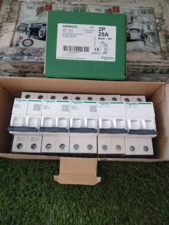 Lote de interruptores automáticos de la marca Schneider Electric.