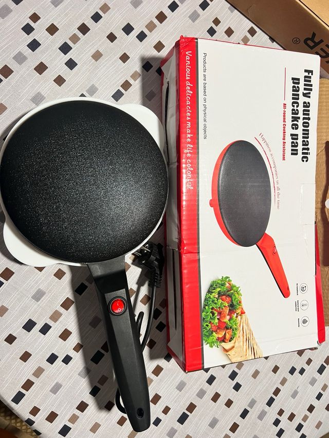 Crepera eléctrica automática para hacer tortitas y crepes. - Diseño compacto y fácil de usar. - Superficie antiadherente. - Mango ergonómico.
