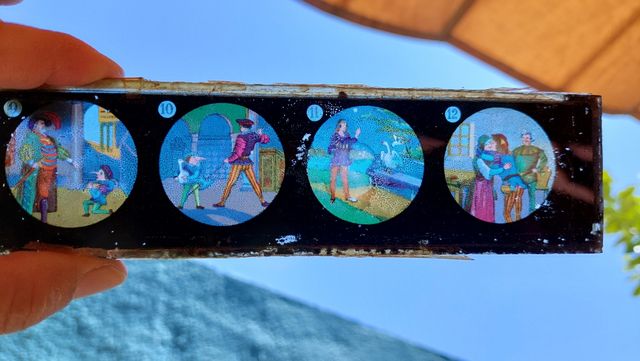 Diapositiva de cristal pintada a mano. Años 30/40