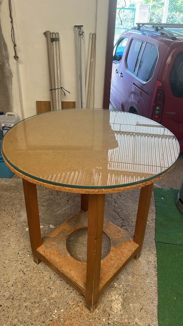 Cristal redondo de mesa de camilla, de 70cm de diámetro, la mesa está un poco regular pero si alguien la quiere va de regalo