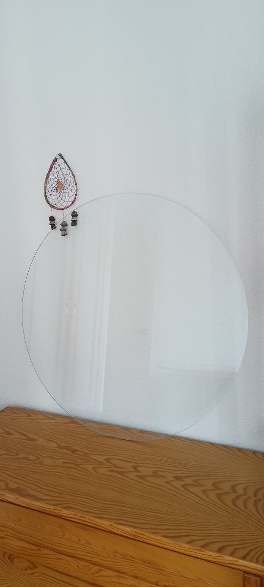 Cristal redondo para mesa, diámetro de 80 cm y grosor de 0,5 cm. En buen estado.