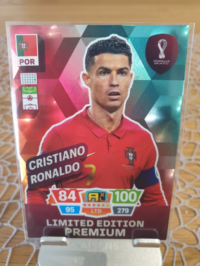 Detalles del productoVendo cromo de Cristiano Ronaldo de la colección Adrenalyn XL Qatar 2022. Es una edición limitada premium. - Edición limitada y numerada. - Incluye la tarjeta en perfecto estado. - Ideal para coleccionistas.