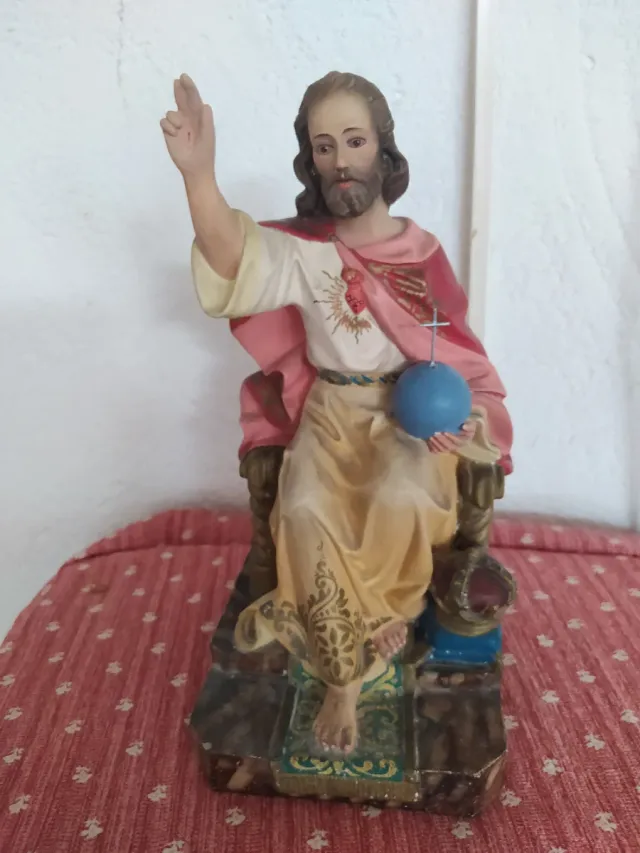 - Manto rosa y túnica dorada con adornos. -Vendo este cristo muy antiguo del sagrado corazón en un estado muy bueno para los años que tiene, el sello holot creo que por el diseño que tiene es de los primeros que sacaron, es muy difícil de conseguir por qué si se fijan en las fotos la corona que está en sus pies está a su izquierda y todos los lleva en la derecha , no hago envíos por la aplicación solo hago envíos por correos más información por Wh