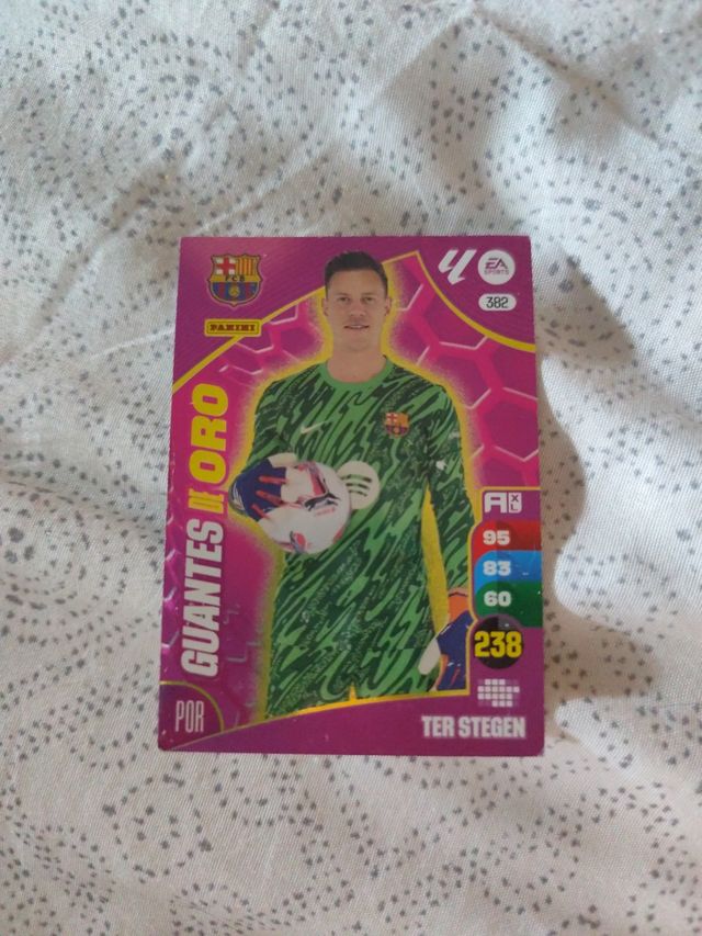 Detalles del productoTarjeta de cromo Adrenalyn XL del portero Marc-André ter Stegen del FC Barcelona. La tarjeta está algo tocadas esquinas