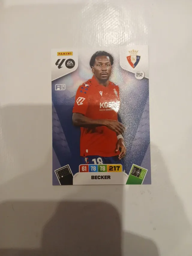 Cromo de fútbol Panini EA Sports. - Número de cromo: 252. - Jugador: Becker. - Incluye estadísticas del jugador.