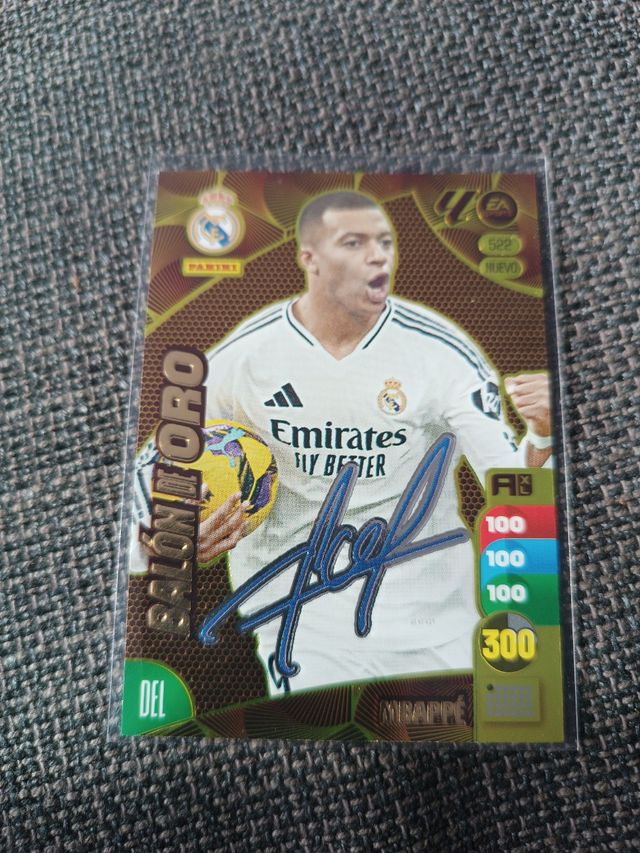 Cromo balón de oro firmado de mbappé de nueva actualización, en perfecto estado. Adrenalyn 2024-2025