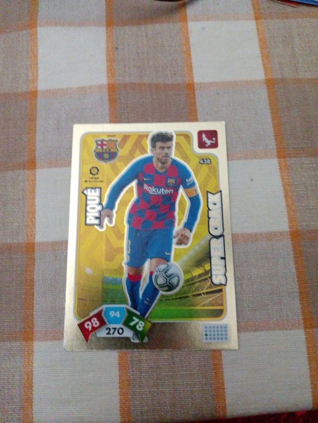Detalles del productoCromo de fútbol Adrenalyn XL de la temporada 2019-2020. Es un cromo de defensa de Gerard Piqué, jugador del FC Barcelona. Tiene un diseño dorado y brillante.