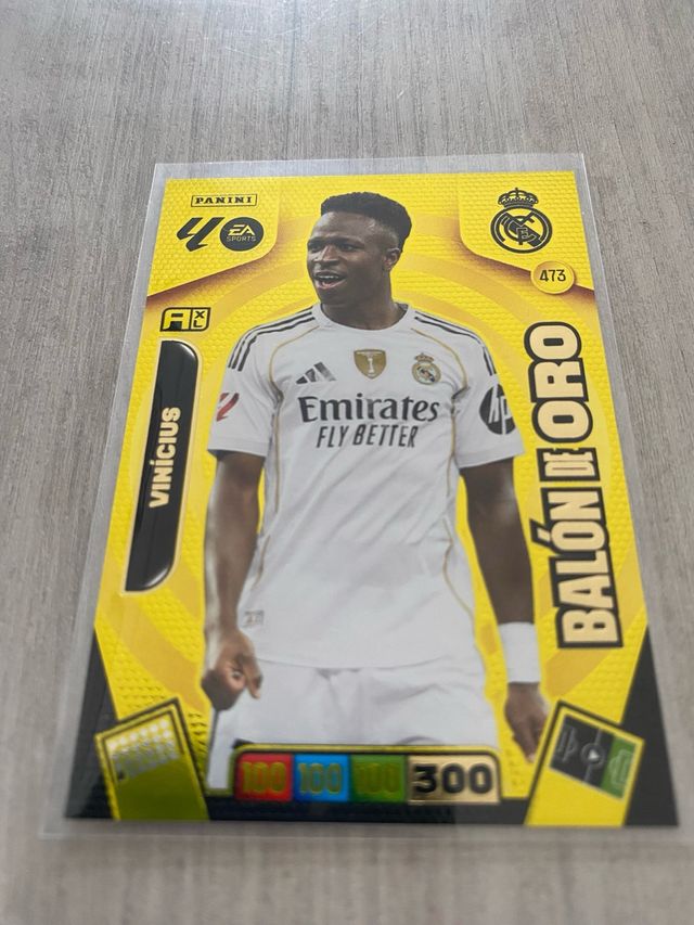 Detalles del productoCromo de la colección Adrenalyn XL, edición Balón de Oro, del jugador Vinicius.