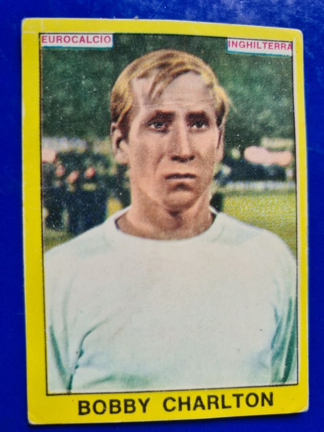 Detalles del productoCromo de Bobby Charlton, colección Panini Liga Italiana Calciatori 1966 1967.