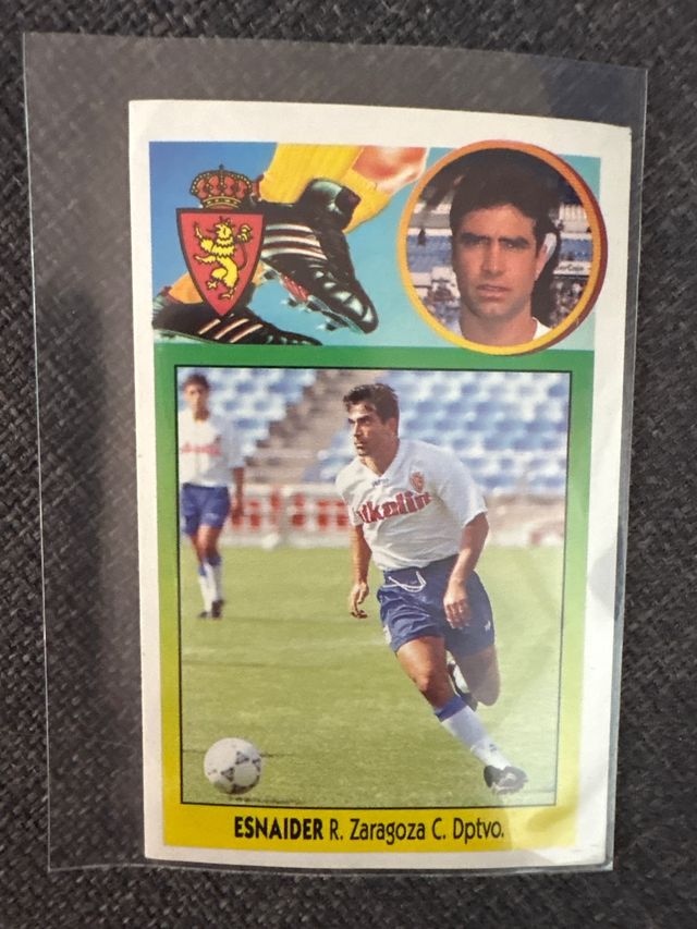 Detalles del productoCromo de fútbol de Esnaider, del Real Zaragoza, correspondiente a la temporada 93-94 de Liga. Se encuentra en buen estado.