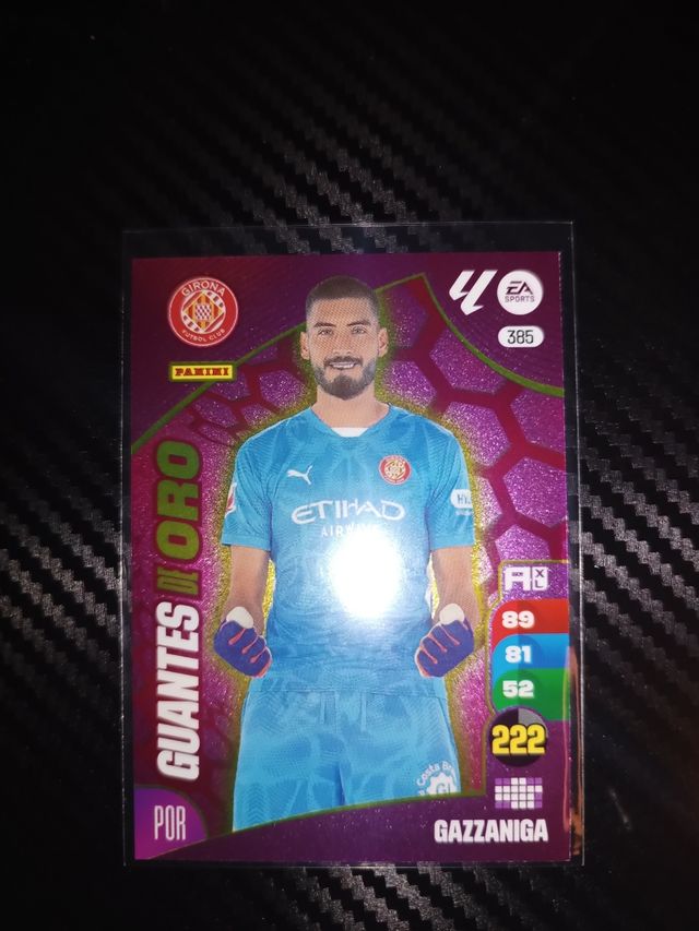 Detalles del productoCromo de coleccionista de la linea Guantes de Oro. Esta tarjeta presenta a Gazzaniga, portero del Girona FC. - Incluye una tarjeta Panini en perfecto estado. - El cromo está en muy buen estado, sin señales de desgaste. - Número de la tarjeta: 385.