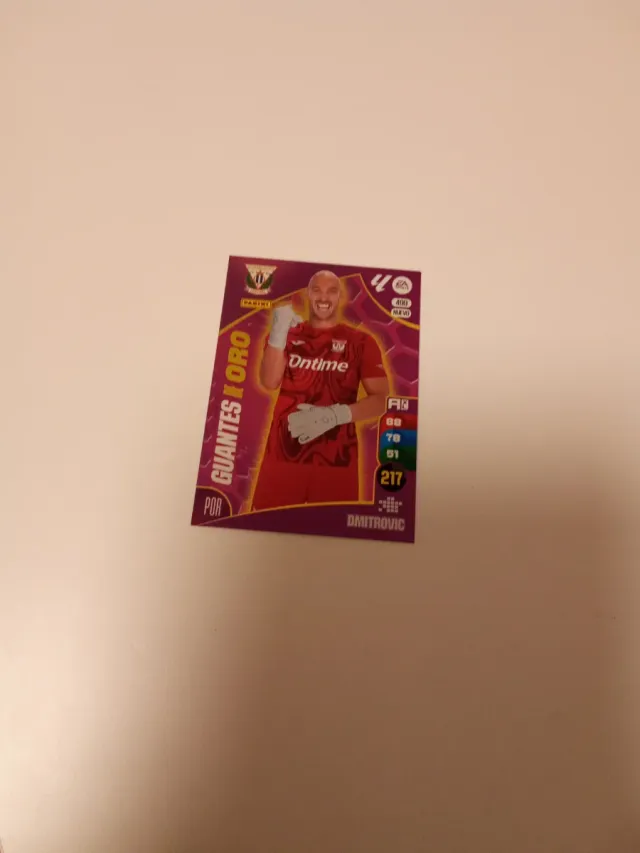 Cromo de fútbol de la colección Guantes de Oro. - Jugador: Dmitrovic - Categoría: Guantes de Oro - Atributos: 78, 51, 217