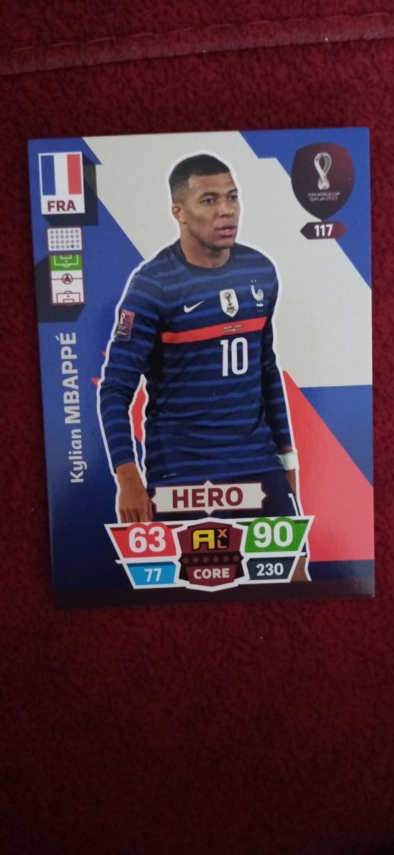 Cromo de Kylian Mbappé perteneciente a la colección Adrenalyn XL de Panini del Mundial de Fútbol Qatar 2022. Precio: 10 euros.