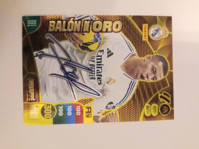 Cromo de fútbol de Mbappé, edición Balón de Oro de Panini. - Jugador: Mbappé - Edición: Balón de Oro - Marca: Panini - Incluye estadísticas de juego