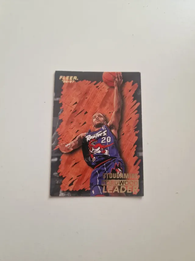 Tarjeta de baloncesto de la NBA de la temporada 96-97. - Marca: Fleer - Jugador: Stoudamire - Edición: Hardwood Leader