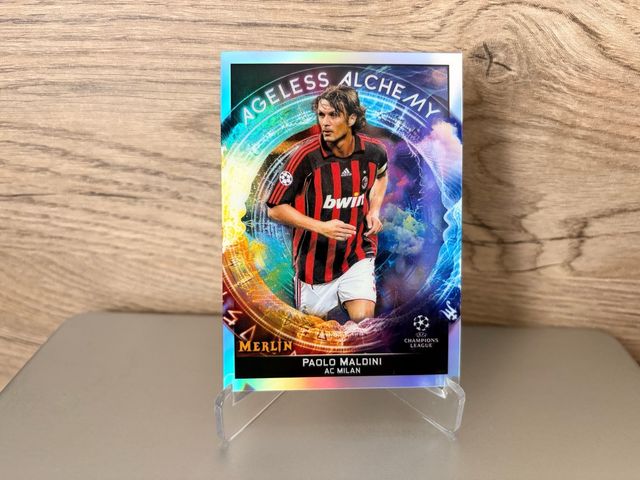 Detalles del productoTarjeta coleccionable de Paolo Maldini de la colección Topps Ageless Alchemy.