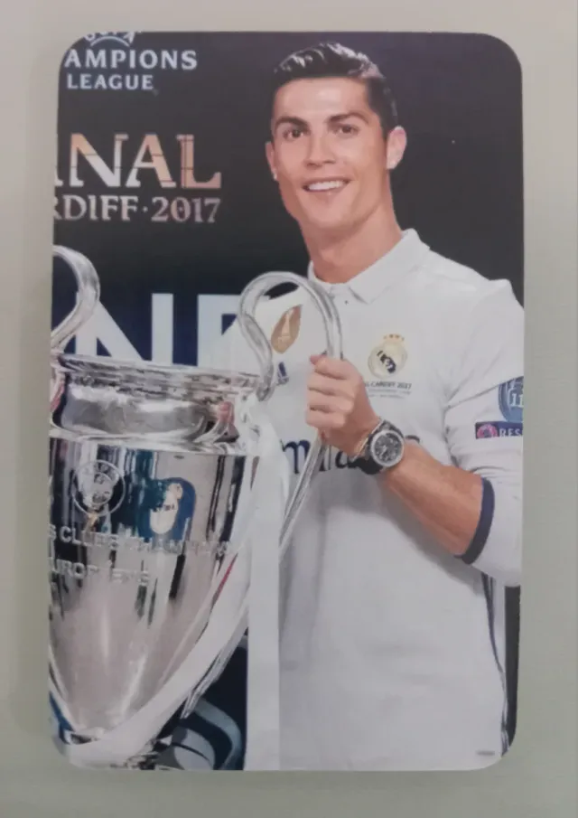 Detalles del productoCromo card de Cristiano Ronaldo celebrando la Champions League.