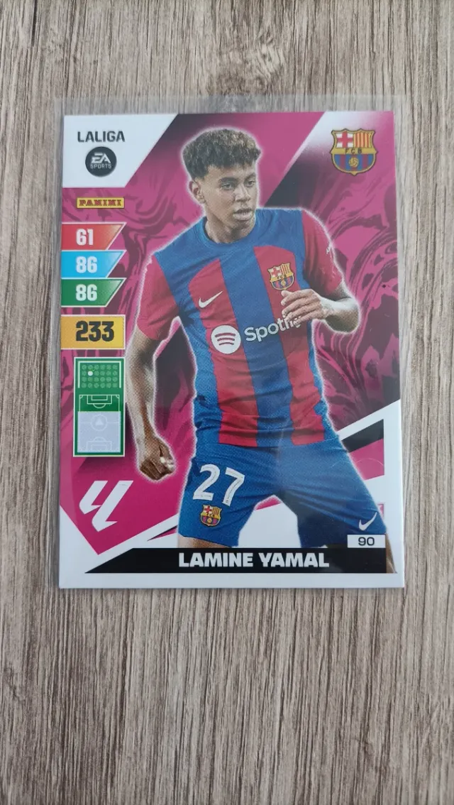 Detalles del productoCarta coleccionable de Lamine Yamal, rookie de la temporada 2023/2024.