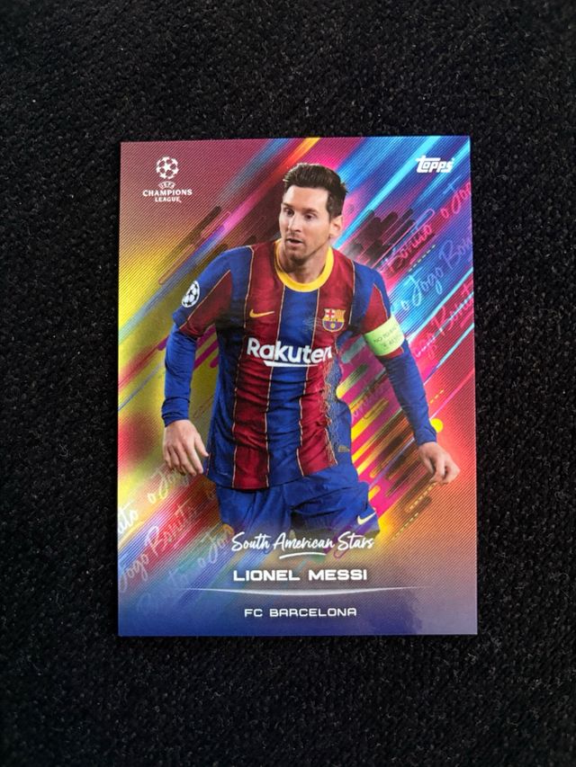 Detalles del productoCarta South American Star de Lionel Messi de la colección Topps Jogo Bonito de la Champions League.