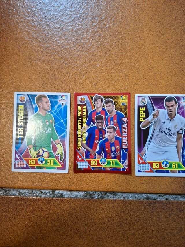 Colección de cromos de jugadores de La Liga Santander de Adrenalyn 2016-2017 - Ter Stegen - Sergi Roberto / Piqué / Umtiti / Jordi Alba - Pepe