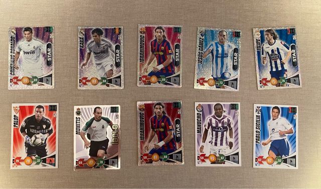 Detalles del productoSe venden 10 cromos de la colección Adrenalyn XL. Están en buen estado, algunos presentan ligeras señales de uso.