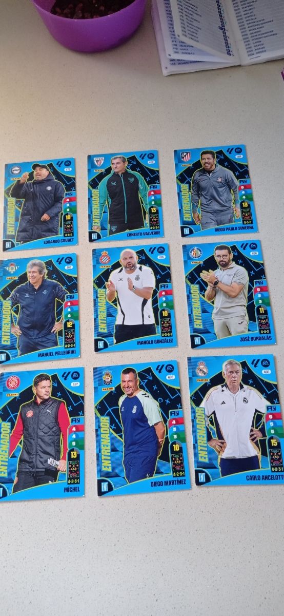 Vendo cromos Adrenalyn entrenadores equipos de futbol temporada 24-25. En perfecto estado. Precio por unidad. Hago envíos